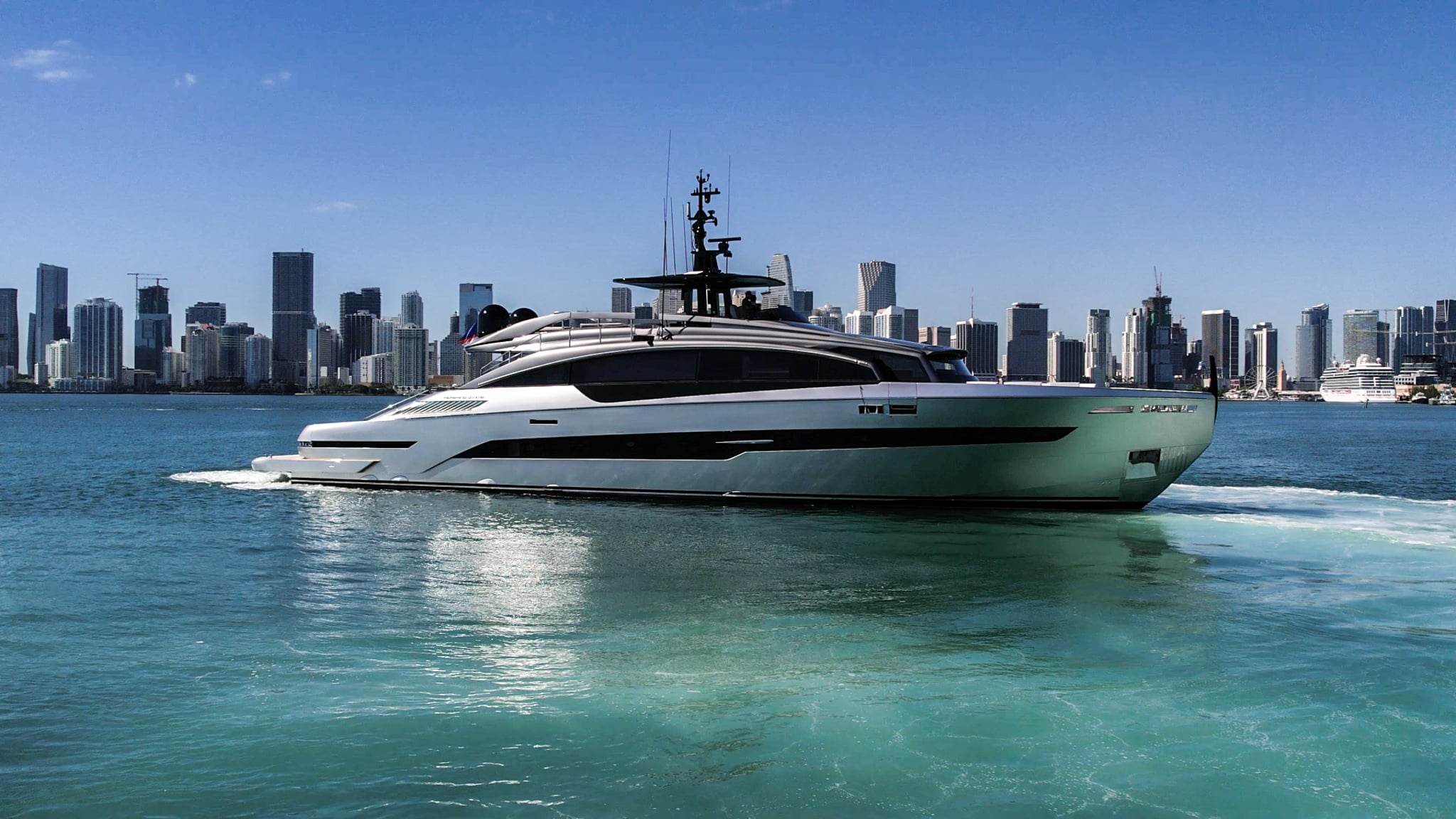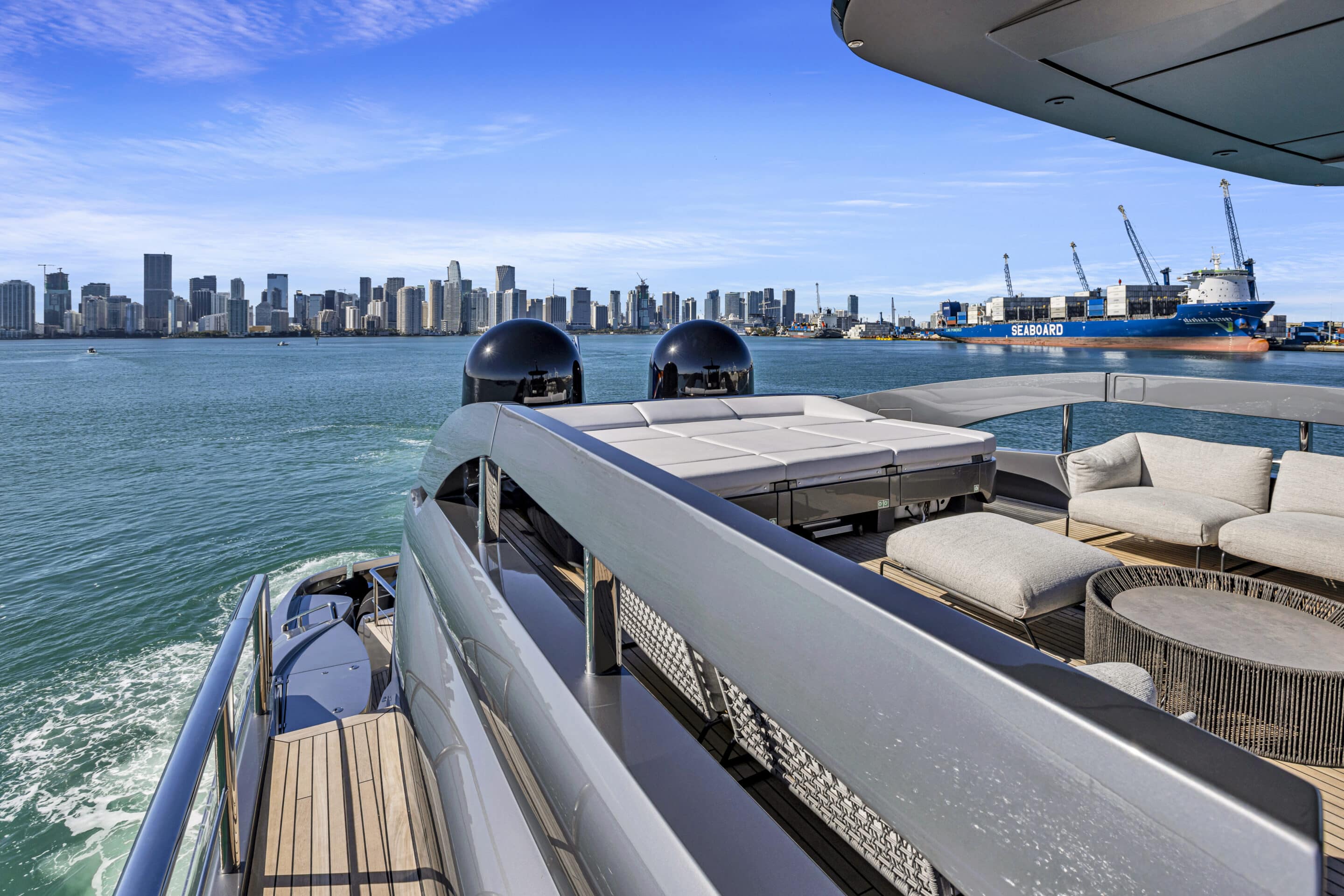Bold, futuristic, and unapologetically powerful, the 116β Pershing GTX116 is a groundbreaking Sport Utility Yacht that redefines what high-performance luxury looks like on the water. Launched in 2022 and departing from Island Gardens Marina (888 MacArthur Causeway, Miami, FL 33132) and Miami Beach Marina (300 Alton Rd, Miami Beach, FL 33139), this 35.24-meter masterpiece blends adrenaline-fueled speed with expansive volume and refined comfort. Driven by triple 2,000 HP MAN engines with Kamewa waterjets, the GTX116 delivers exhilarating performance while maintaining remarkable stability and elegance underway.
