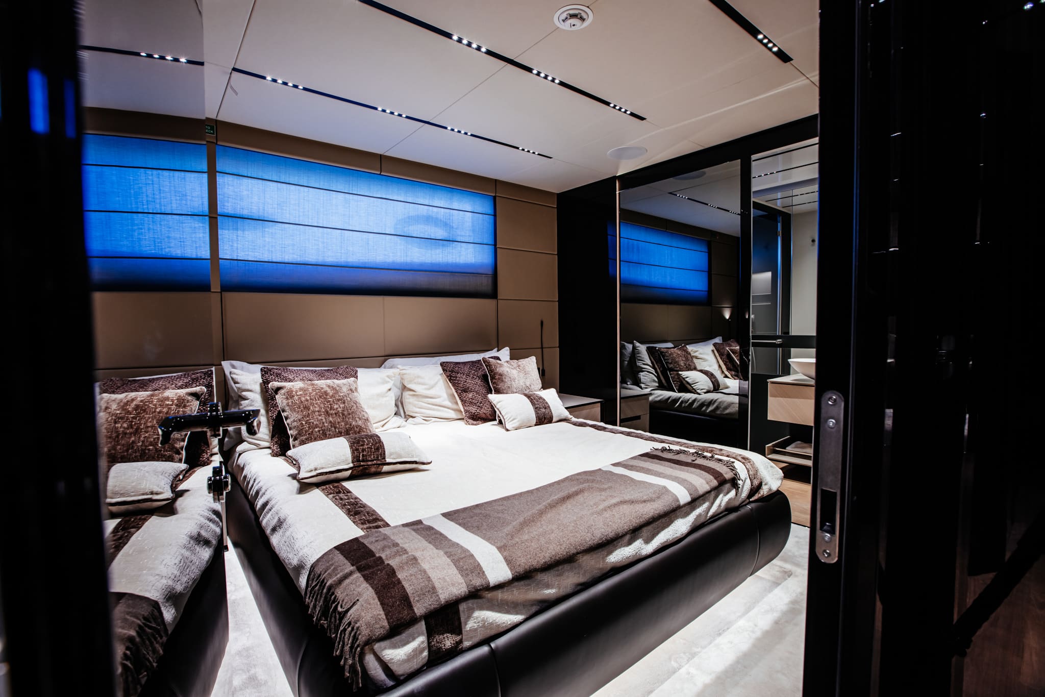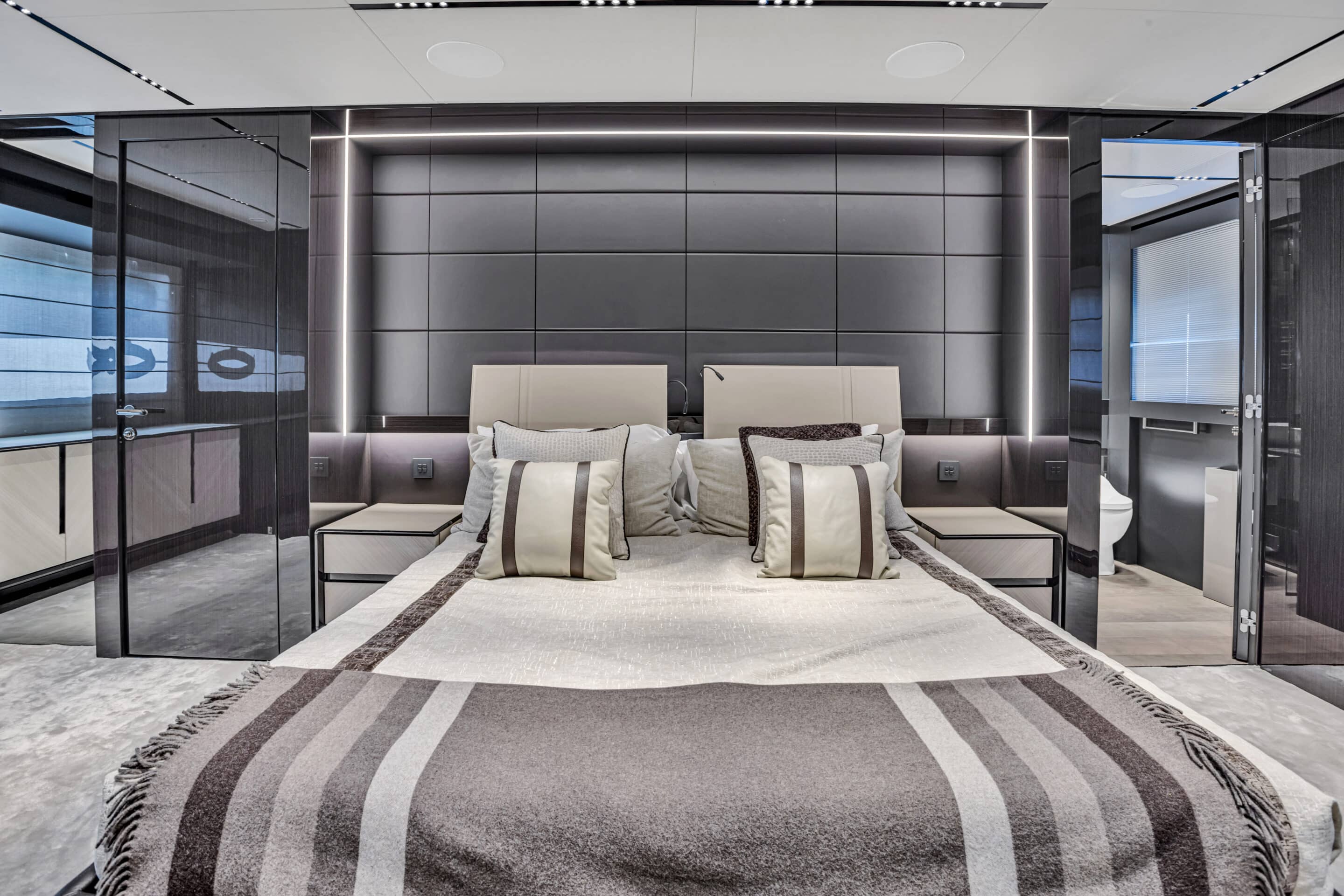 Inside, the GTX116 reveals a sleek, ultra-modern interior finished in eucalyptus wood, supple leathers, and floor-to-ceiling glazing that floods the space with natural light. The main salon features expansive seating, a private balcony stretching nearly four meters, and a dining area for up to ten guests. Below deck, five beautifully appointed ensuite cabins accommodate up to ten guests, including a full-beam ownerβs suite that spans the yachtβs width, complemented by refined guest staterooms and discreet crew quarters for up to five. Crowned Best Innovation at the 2023 World Yachts Trophy, the Pershing GTX116 is not just a yachtβitβs a bold statement of speed, design, and next-level luxury.