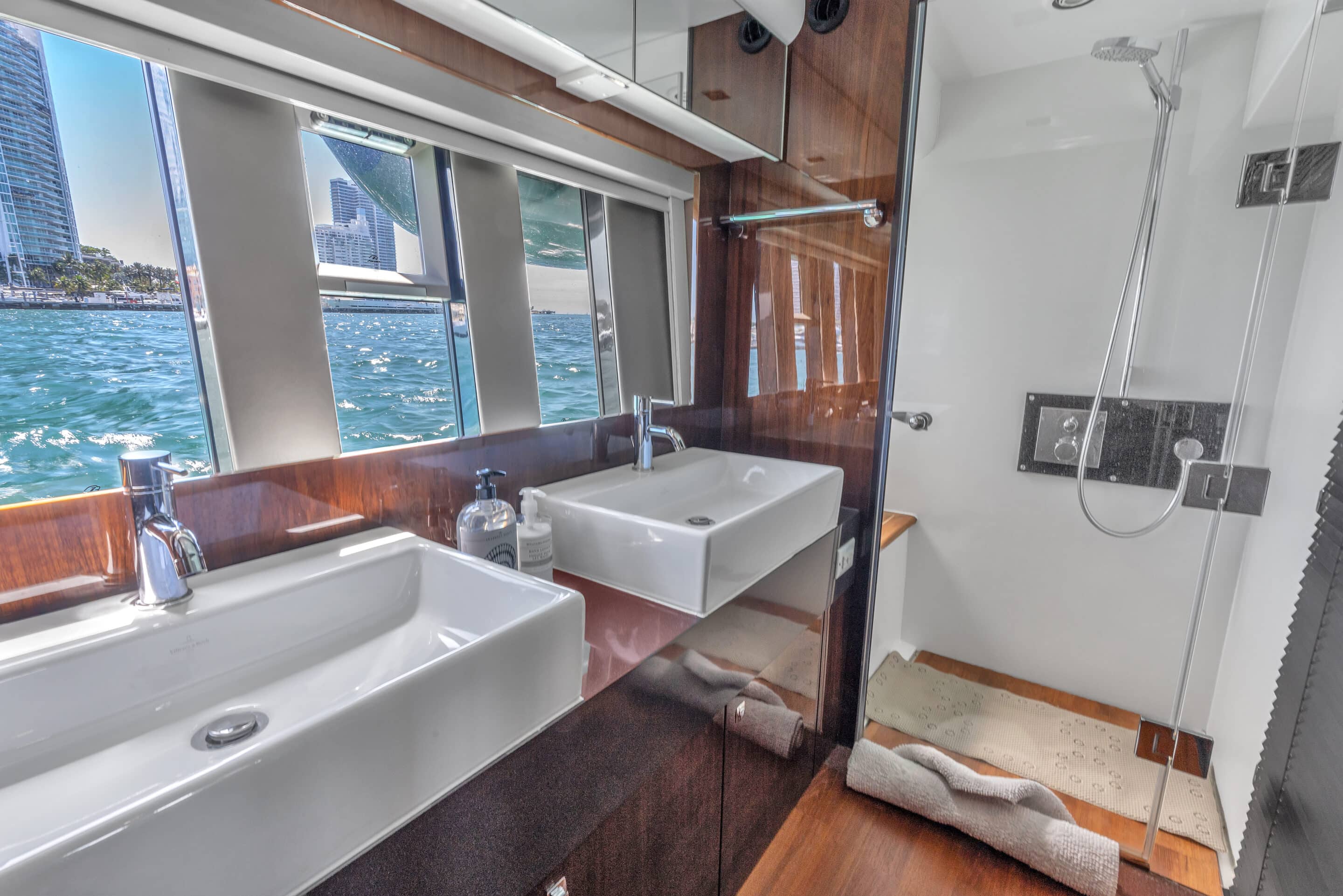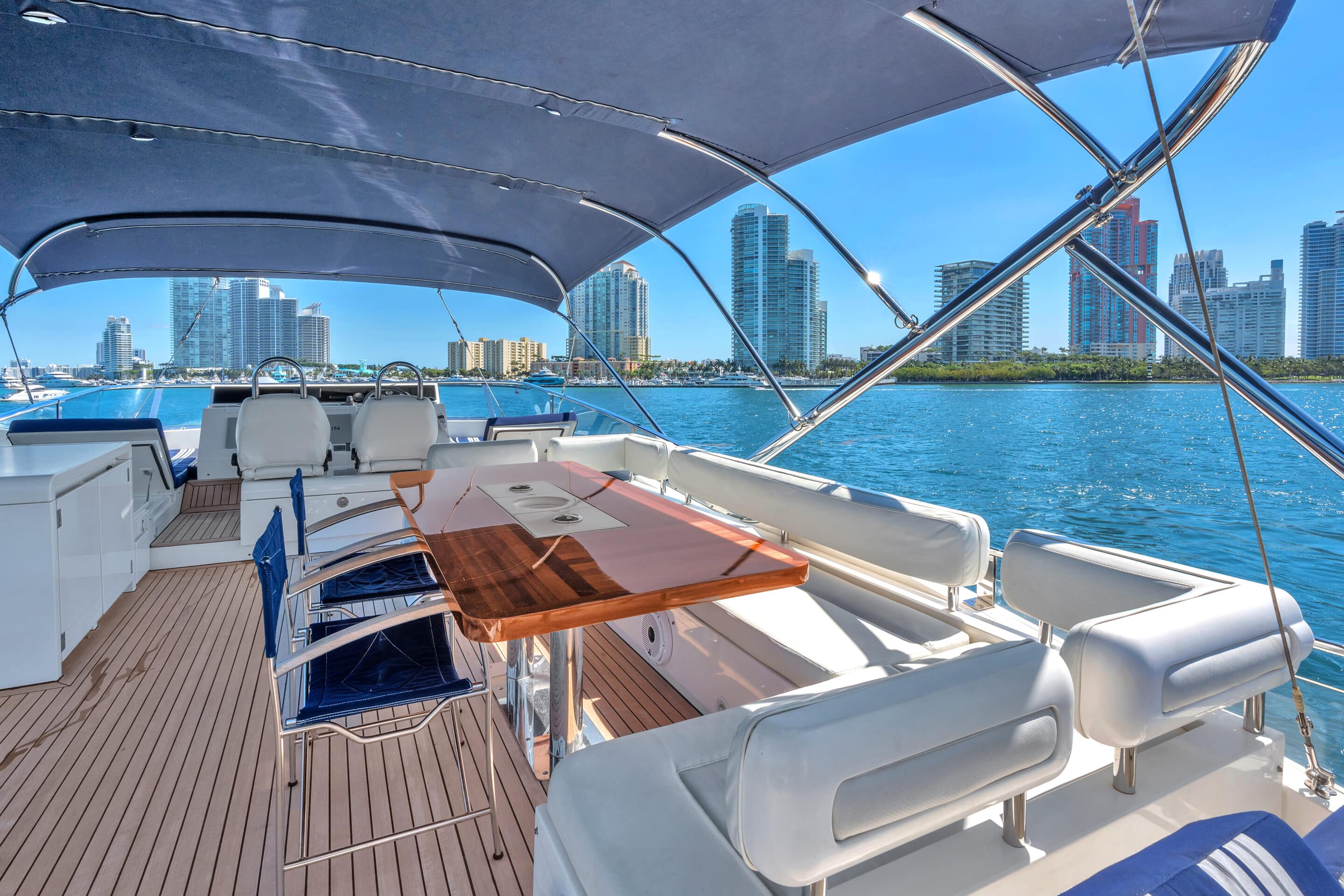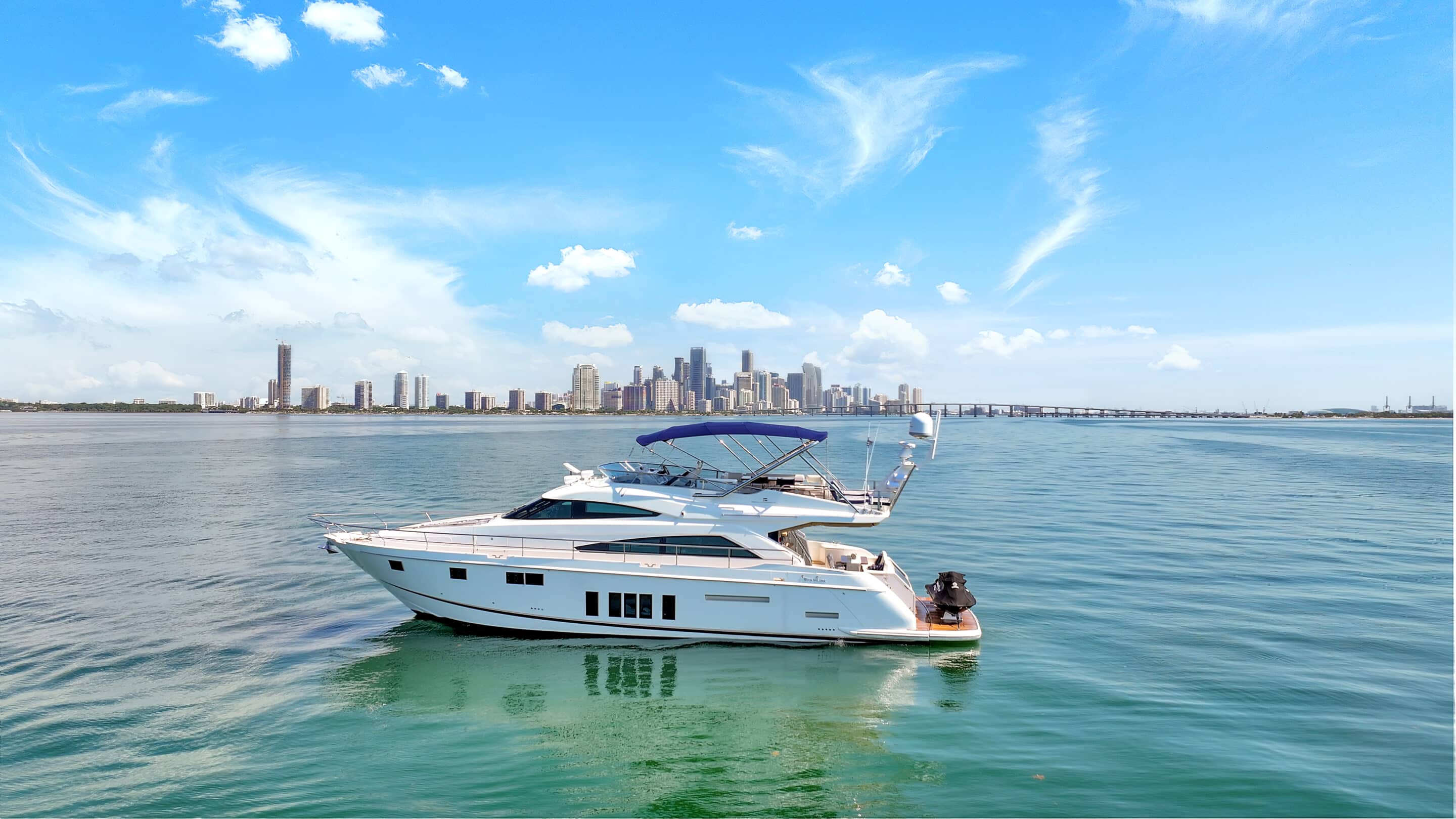 Your journey begins at Miami Beach Marina (300 Alton Rd, Miami Beach, FL 33139)βwhere sophistication meets the sea and with its expansive flybridge, generous cockpit, and thoughtfully planned interior, the Squadron 66 offers the feel and functionality of a much larger yacht. Designed for those who value open-air entertaining and luxurious comfort, it provides an effortless flow between indoor and outdoor living spaces, creating the ideal setting for hosting or relaxing in style.