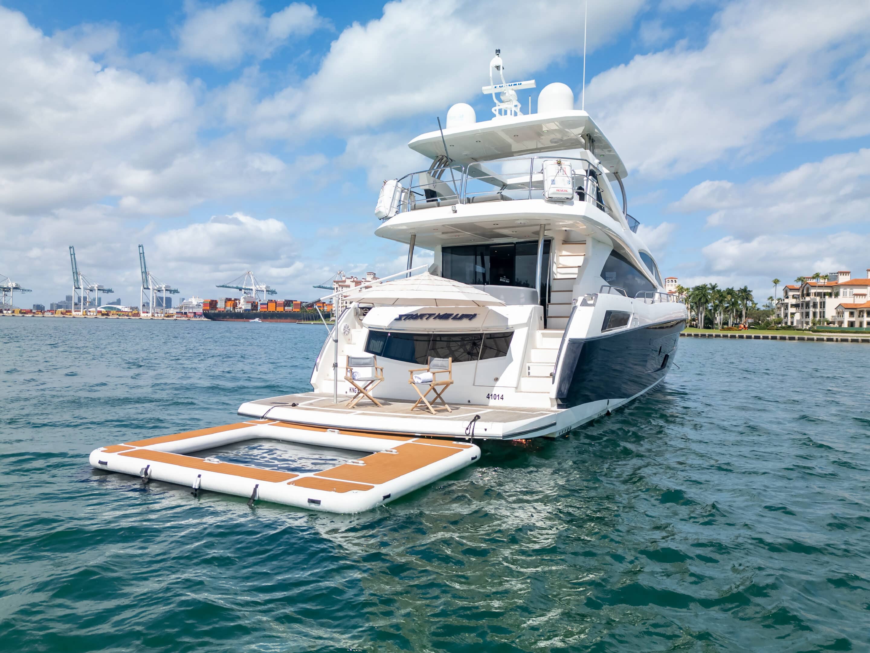 Departing from the iconic Miami Beach Marina (300 Alton Rd, Miami Beach, FL 33139), the 80β Sunseeker Start Me Up invites you to experience the thrill of high-performance yachting wrapped in unmistakable British luxury.