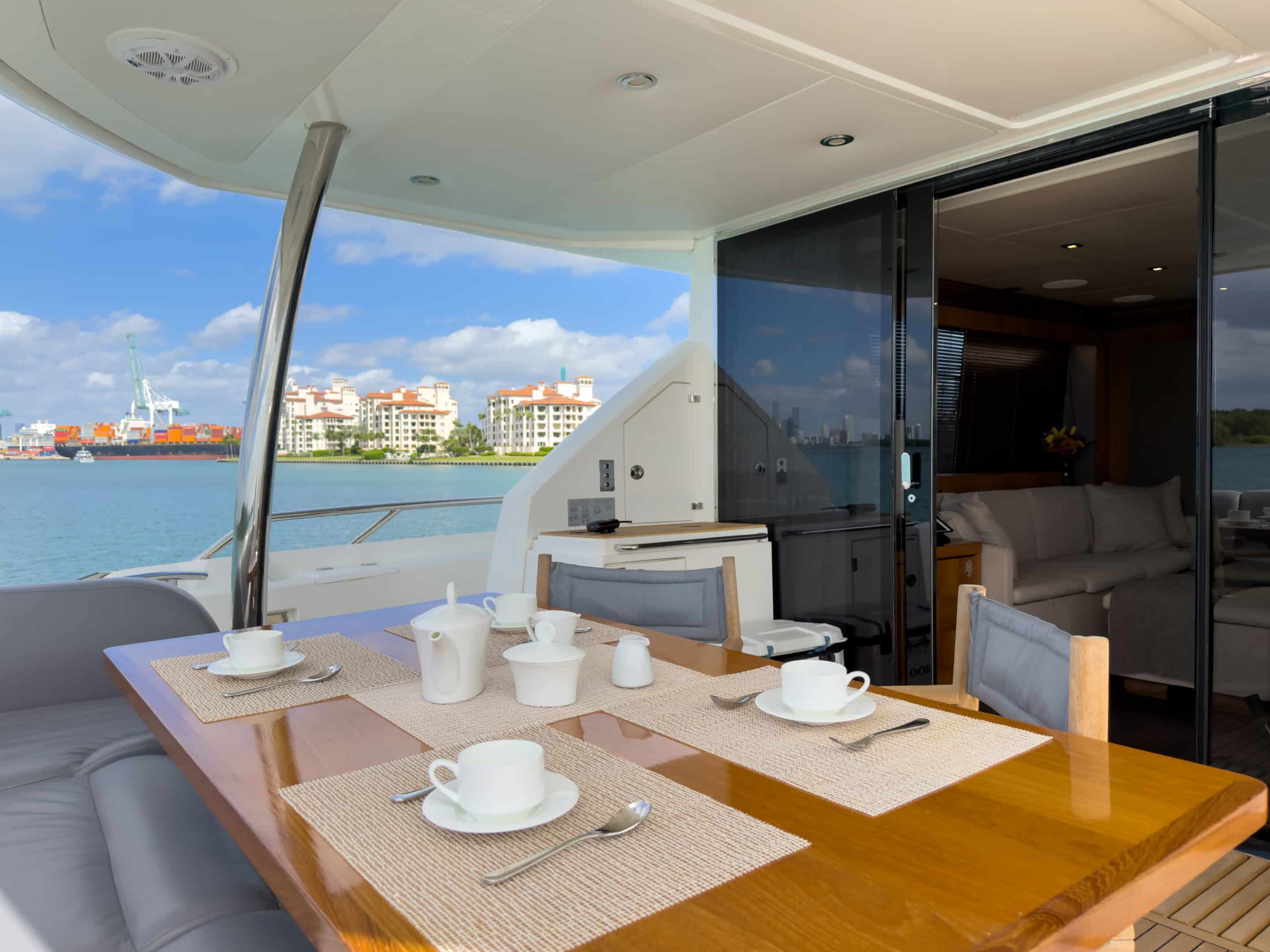 I have chartered Dannyβs 65 Ferretti a couple times and the yacht is incredibly clean. IT LOOKS NEW. Crew is great they have amazing service and the boat with and itβs amanities is fantastic.
